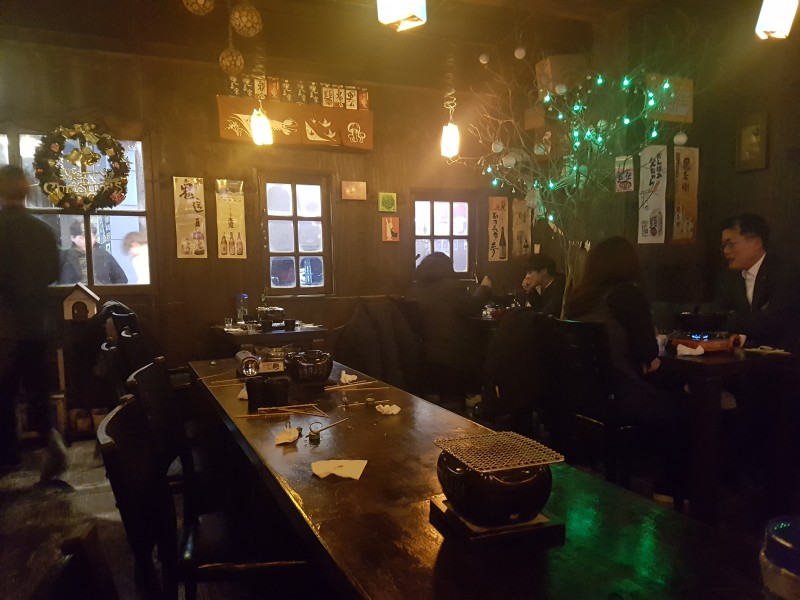 대치동에서 우연치 않게 오랜 친구를 만났다. 이런게 우연일까? 우린 대치동에서 술한잔 먹으며 지난얘기에 시간가는줄 몰랐고 흥겨운 시간을 보냈다.대치역에서 가까운 곳에 이렇게 시커먼 가게가 있었는데 꼬치도 맛있고 오뎅도 훌륭한 국물맛이 매력적이었다.흔한 종이사케로 조명의 멋스러움을 내었다. 이런가게 분위기 좋네.우리가 먹은 모듬꼬치다. 닭날개,소세지,새우,마늘,은행 닭염통,돼지 등등 꼬치가 많이도 나왔다. 친구만나 오랜만에 엄청 재미나게 시간 보냈다.